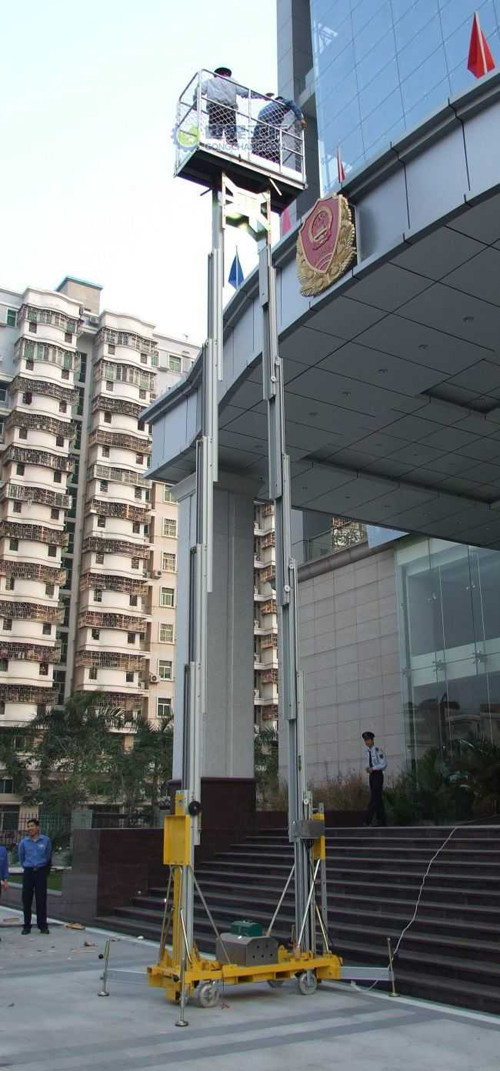 鋁合金液壓升降機主體采用鋁合金材質構成,具有造型美觀、體積小、重量輕、升降平衡、安全可靠等優點,用于工廠、賓館、餐廳、車站、機場影劇院、展覽館等場所。該升降機承載能力強,適合于兩人(可攜帶一定的重量工具和材料)同時登高作業;還可根據不同環境訂制成各種非標產品,以滿足不同需要;是保養機具、油漆裝修、調換燈具、電器、清潔保養等用途的伴侶。