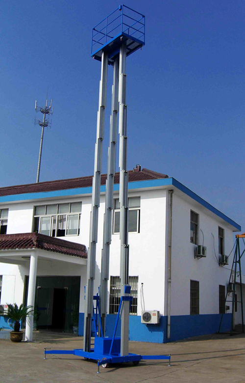 鋁合金液壓升降機且耗電少、無污染、工作時不傷地面,可用于貼墻工作及探出作業,工作無死角。鋁合金液壓升降機廣泛適用于星級酒店,大型超市等各行業大廳、廠房內的高空清潔和電線、照明安裝維護類高空作業,鋁合金液壓升降機根據其自身升高度可分為:單桅柱式升降機(4-10米),雙桅柱式升降機(8-14米)跟多桅柱式升降機(12-22米)。